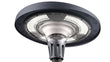 Lampa solara LED tip UFO de exterior, ideala pentru montaj in varful stalpilor de iluminat, este o solutie moderna, eficienta si versatila. Cu o putere de 30W si un flux luminos de 2200 lumeni, aceasta lampa dispune de lumini RGB+CCT, permitand setarea atat a luminilor colorate ambientale, cat si a luminii albe (rece, calda sau naturala). Controlul se realizeaza usor prin telecomanda inclusa sau prin aplicatia Bluetooth de pe telefon.