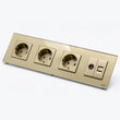 Priză Schuko triplă + TV + LAN cu ramă din sticlă