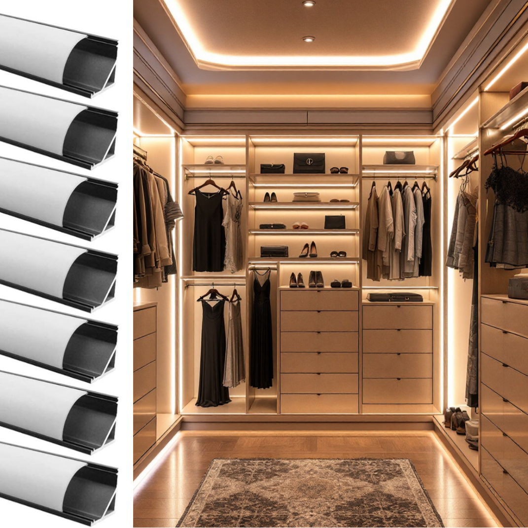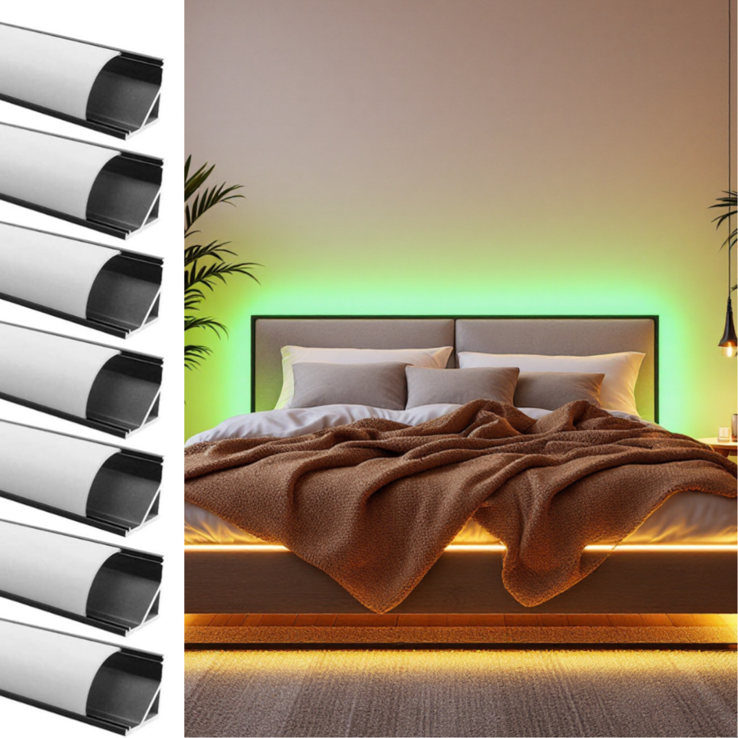 Cu un design subtire si un finisaj negru mat, acest profil din aluminiu ofera o solutie moderna si versatila pentru montajul benzilor LED in unghiuri perfecte de 90 de grade. Fabricat din materiale de inalta calitate, profilul asigura o disipare eficienta a caldurii, contribuind la prelungirea duratei de viata a benzilor LED. Setul include toate accesoriile necesare – dispersor pentru o lumina uniforma, capace de capat pentru un aspect impecabil si cleme de prindere pentru o instalare usoara si sigura. Compatibilitatea cu benzi LED de pana la 10mm latime il face ideal pentru o varietate de aplicatii.