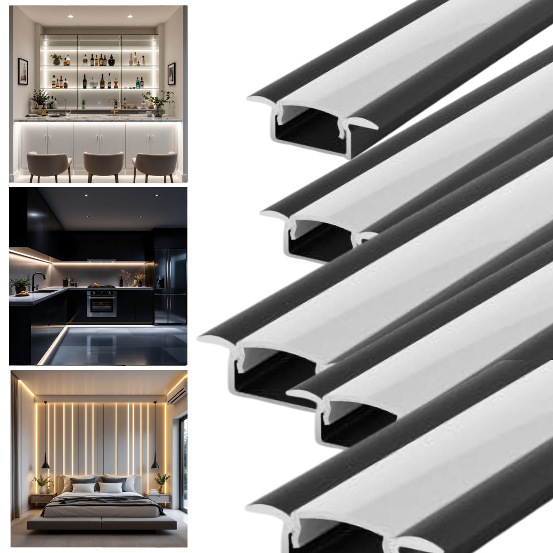 Profilul LED Incastrat Negru 2 METRI cu Dispersor Alb reprezinta alegerea perfecta pentru designerii si proprietarii care doresc sa creeze un impact vizual puternic prin contrast si rafinament. Acest profil versatil ofera o solutie eleganta si practica pentru integrarea iluminatului LED in arhitectura moderna, asigurand un aspect sofisticat in orice ambient.