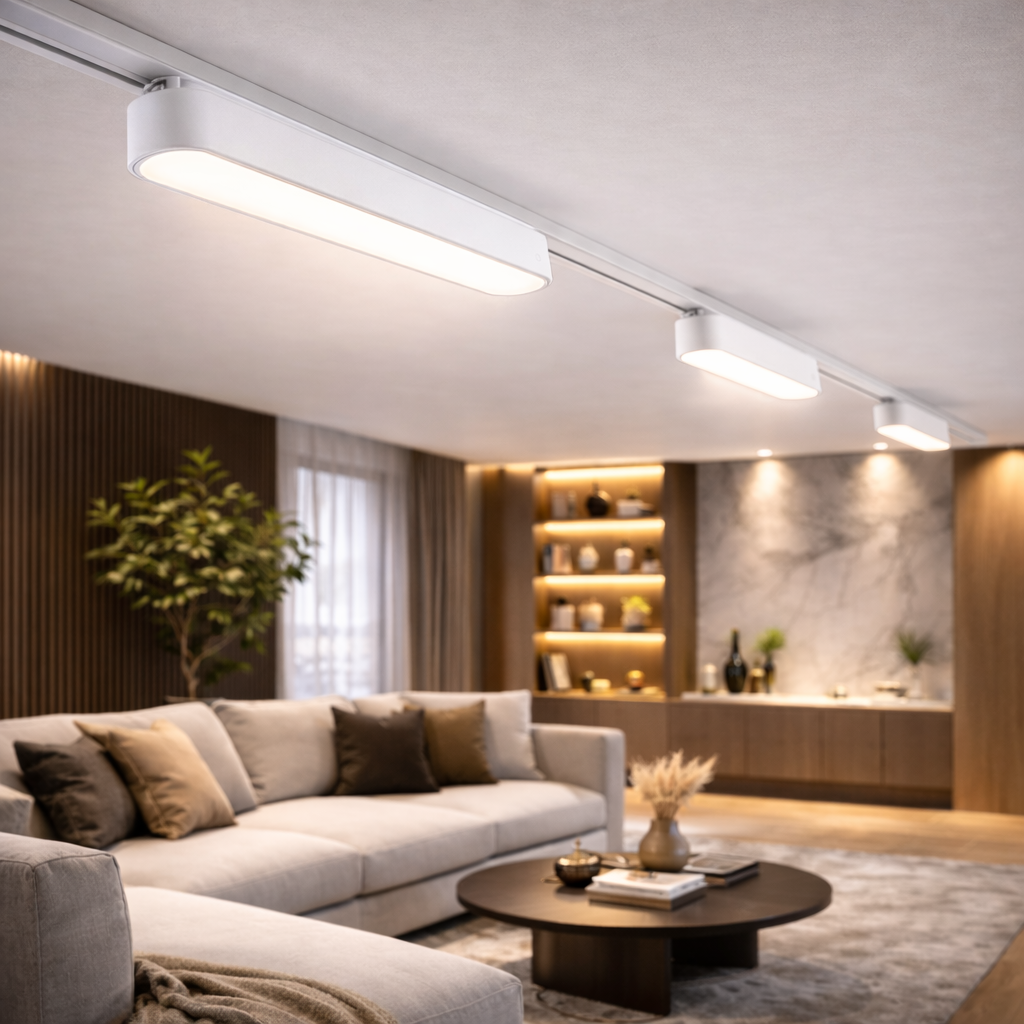 Spot LED liniar modern pentru șină magnetică slim 48V, ideal pentru iluminat de accent în livinguri, birouri, spații comerciale sau showroom-uri. Designul minimalist și finisajul alb mat îl integrează perfect în amenajări moderne.