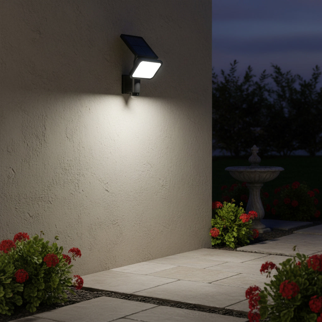 Proiectorul LED solar SolarRay este o solutie eficienta si autonoma pentru iluminatul exterior, oferind un echilibru foarte bun intre consum redus si putere luminoasa. Cu o putere de 12.6W si un flux luminos de 500 lumeni, acest proiector este potrivit pentru iluminarea curtilor, gradinilor, aleilor, intrarilor sau zonelor perimetrale.
