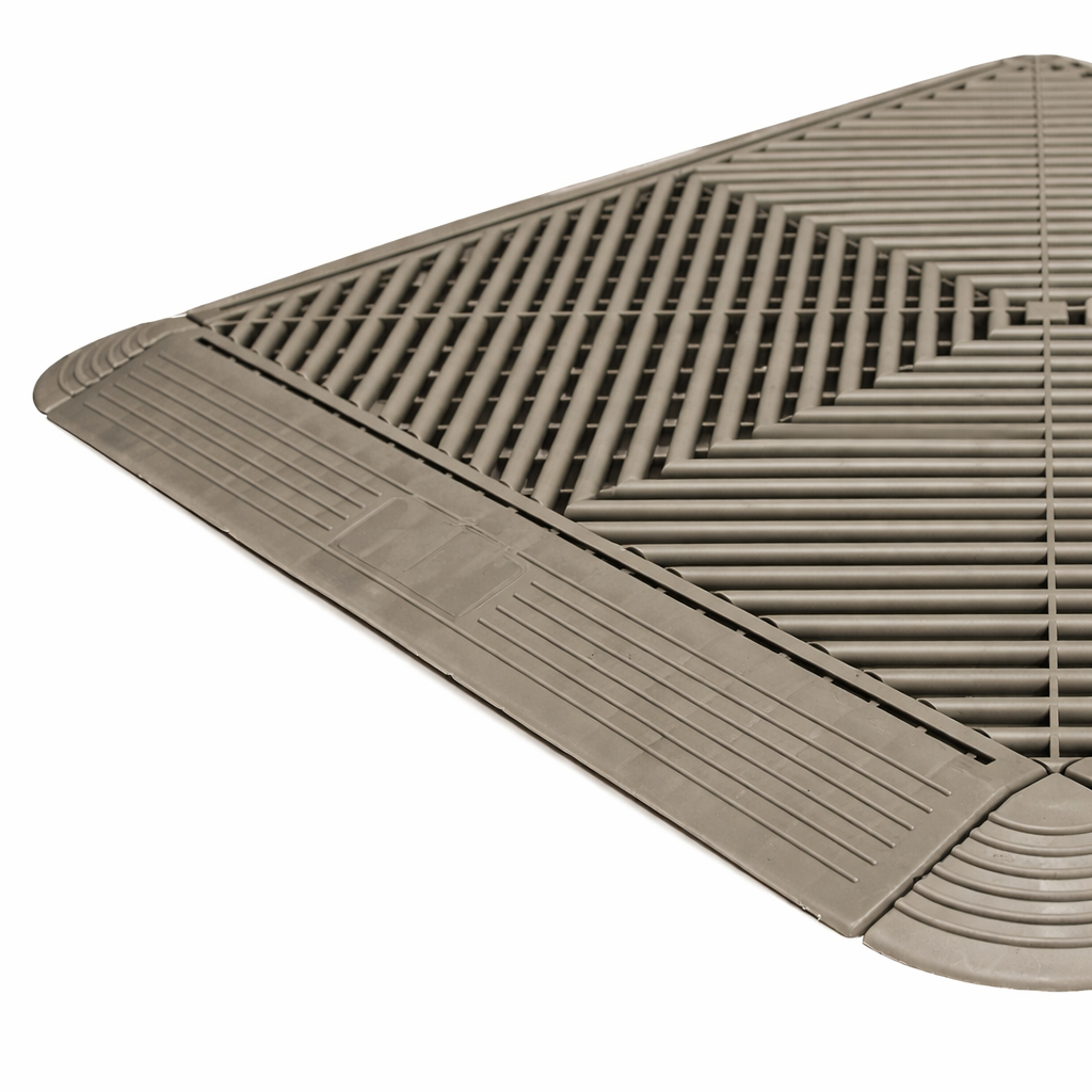 Rampa laterala cu prindere exterioara este solutia ideala pentru finisarea profesionala a pardoselii modulare si pentru realizarea unei tranzitii line si sigure intre suprafata de pardoseala si zona exterioara. Este un accesoriu esential pentru un aspect uniform, functional si estetic.