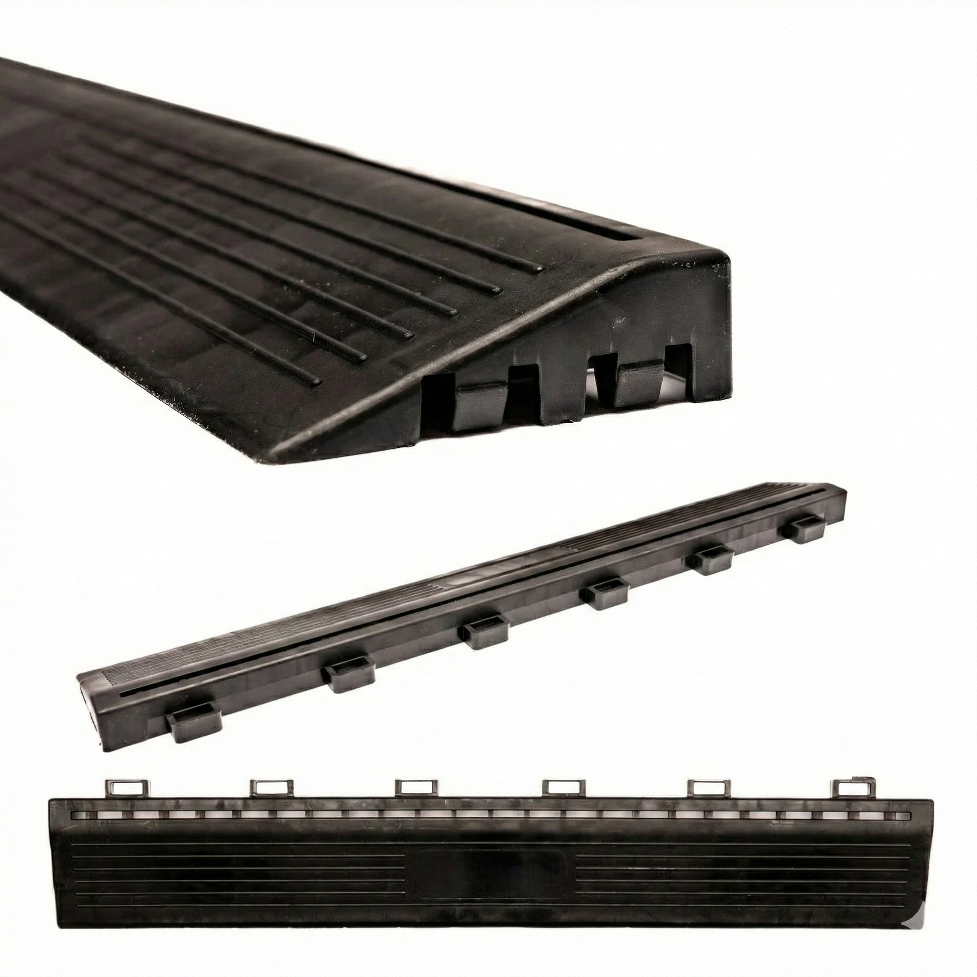 Fabricata din polipropilena (PP) rezistenta, rampa ofera durabilitate ridicata, protectie impotriva loviturilor si uzurii, fiind potrivita atat pentru utilizare interioara, cat si exterioara. Sistemul de interconectare cu clema permite montaj rapid si sigur, fara unelte speciale.