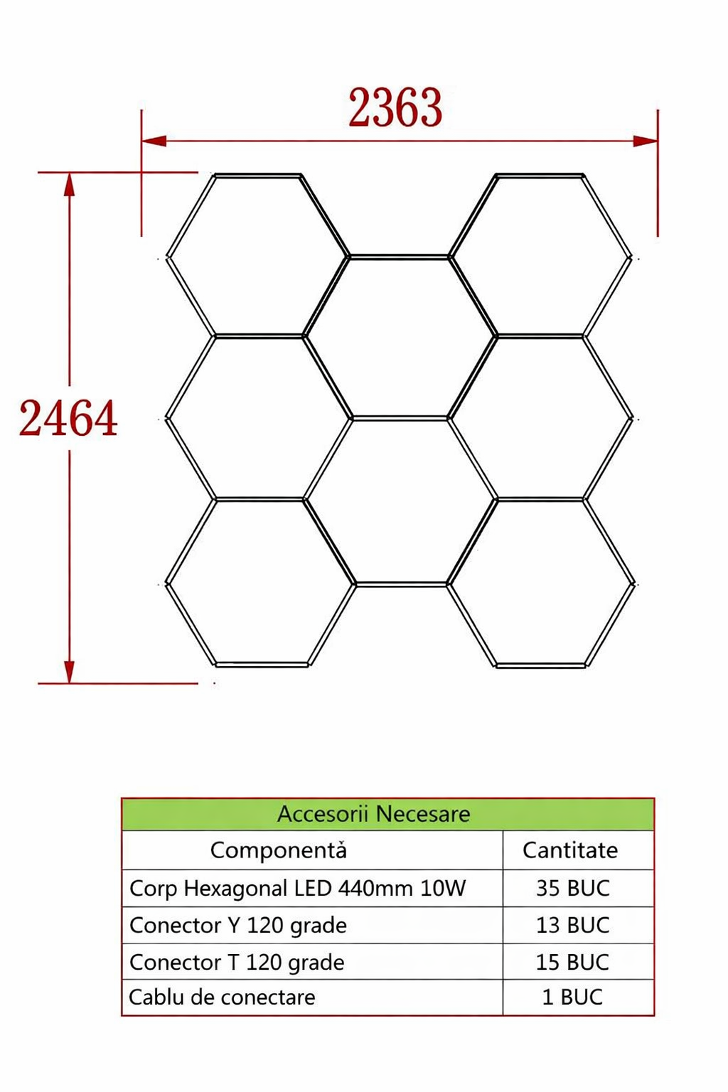 HoneyComb LED 8 Hexagoane Luminoase 350W 236x246CM Echivalent 3200W