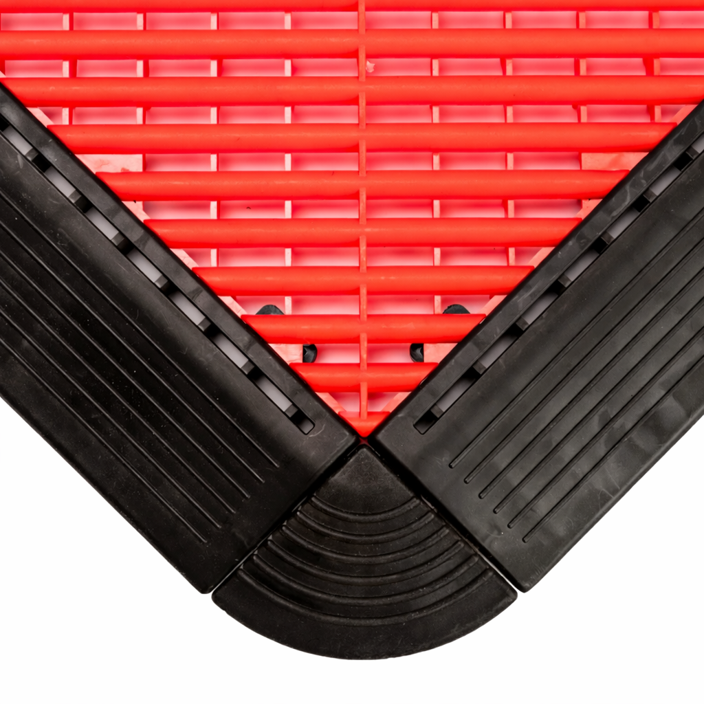 Coltul pentru pardoseala modulara asigura o finisare completa si profesionala a marginilor, oferind un aspect estetic si o tranzitie sigura in zona colturilor platformei. Este accesoriul ideal pentru un sistem de pardoseala bine definit si protejat.
