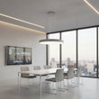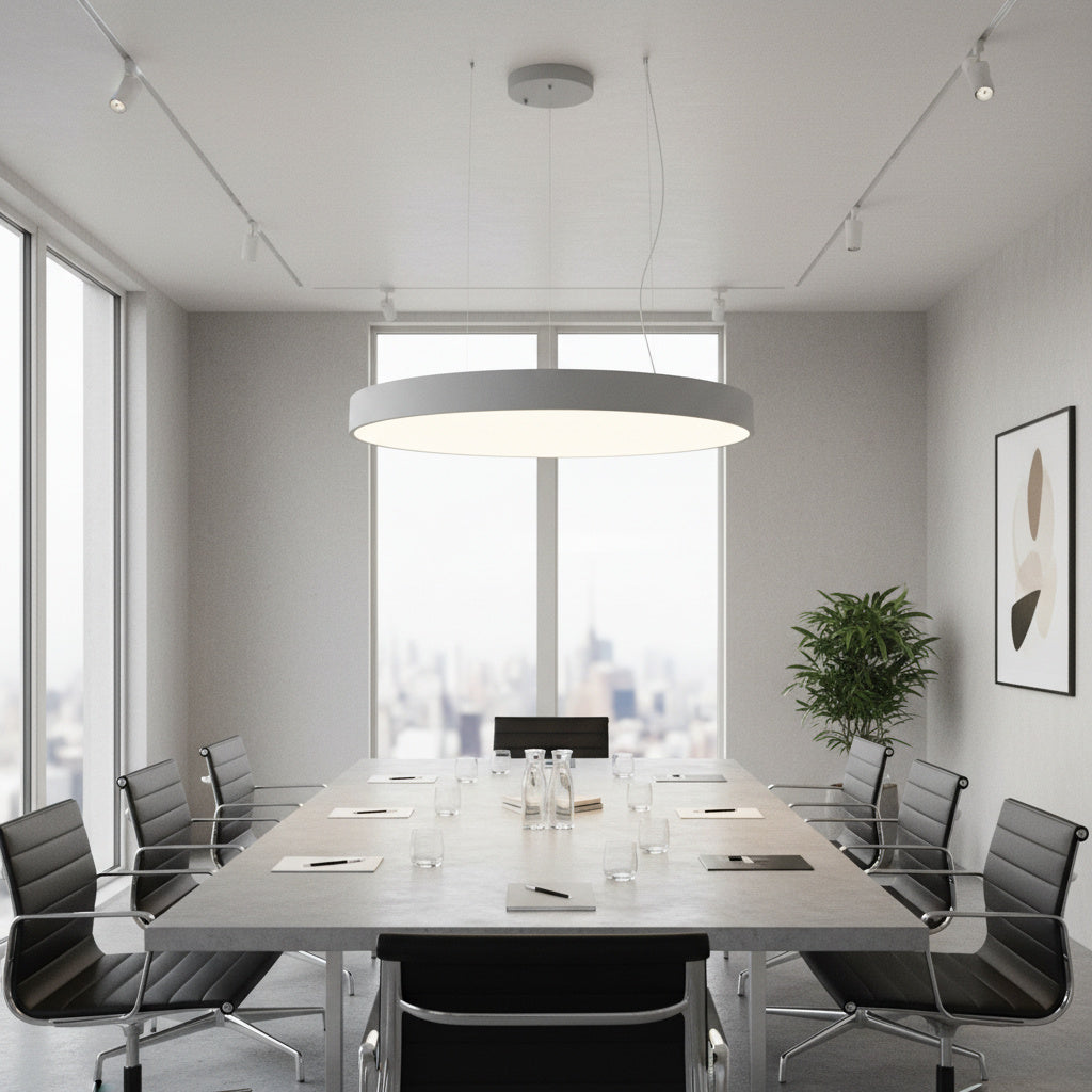 Acest lustra decorativ redefineste eleganta moderna printr-un design minimalist si o iluminare uniforma, perfecta pentru spatii contemporane. Realizat din aluminiu cu finisaj RAL 9016 alb mat si difuzor din opal plexi, corpul de iluminat ofera o prezenta rafinata, ideala pentru living, dining, birouri, sali de conferinte sau receptii.