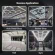 Adaugă un plus de luminozitate și stil spațiului tău cu acest Hexagon Luminos LED de 672W. Cu un design modern și eficient, acest corp de iluminat este ideal pentru garaje, service-uri auto, showroom-uri și diverse spații comerciale, cum ar fi saloanele de înfrumusețare și frizeriile, unde este necesară o iluminare intensă și uniformă.