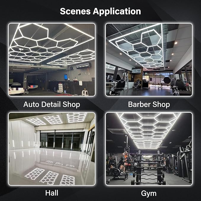 - Design Modern: Forma hexagonală conferă un aspect futurist și elegant, potrivit pentru orice spațiu modern. Iluminatul LED asigură o lumină clară și uniformă, reducând umbrele și oferind o vizibilitate excelentă.