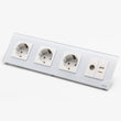 Priză Schuko triplă + TV + LAN cu ramă din sticlă