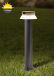 Aceasts stalp de exterior are LED integrat pentru o lumina uniforma si puternica, este capsulata avand indicele de protectie IP67, baterie solara ce se poate schimba, si switch pentru a putea schimba lumina corpului de iluminat (alb rece, alb cald sau alb natural)