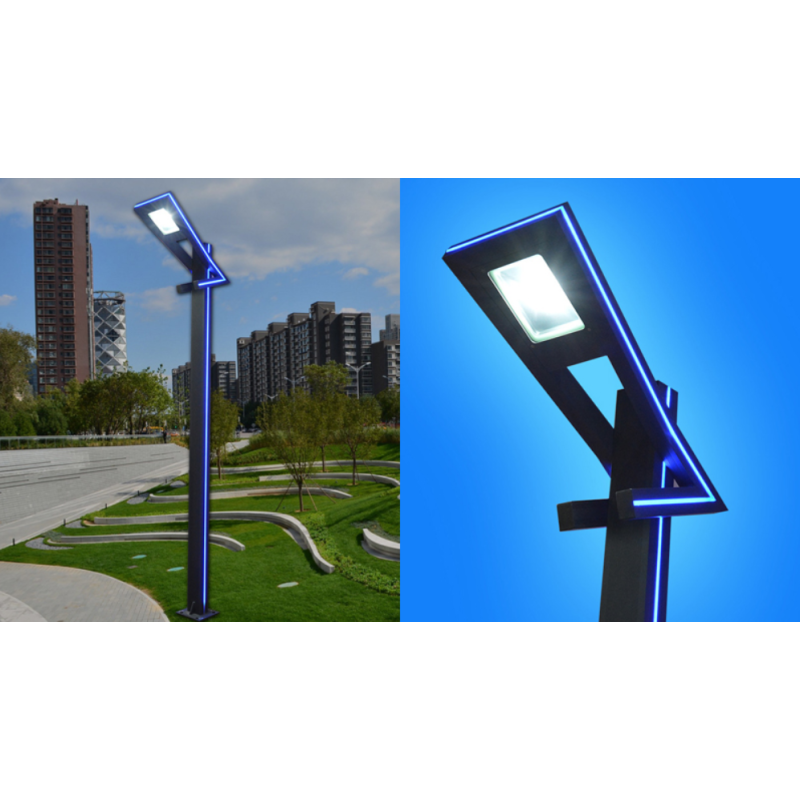Acest stalp de iluminat are LED integrat + banda LED albastra pe lateralele stalpului!