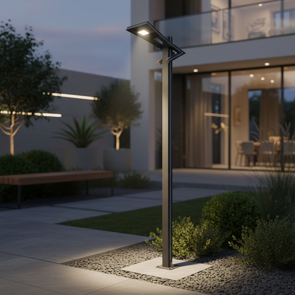 Acest stalp de iluminat are LED integrat + banda LED albastra pe lateralele stalpului!