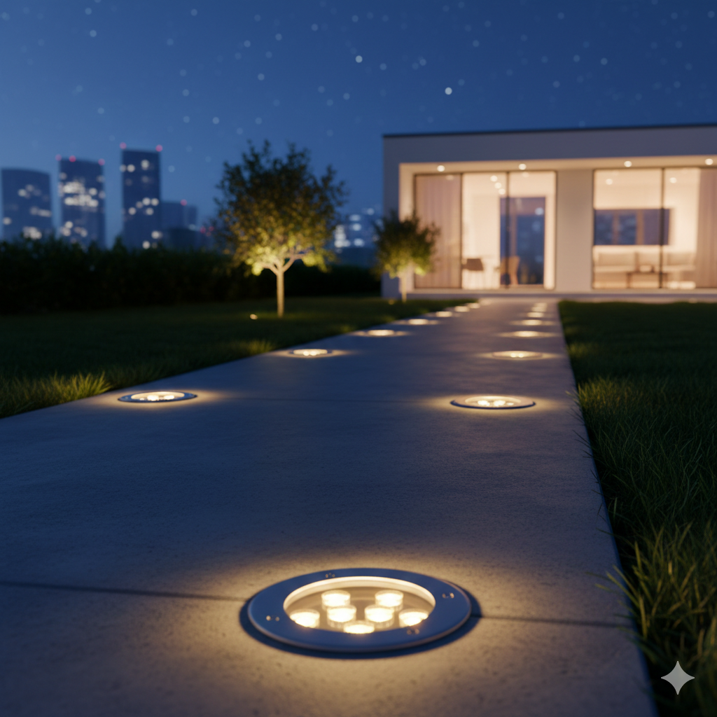 Spoturile de Exterior incastrabile in pardoseala sunt solutia ideala pentru iluminatul solului pentru terase si pardoseli exterioare.